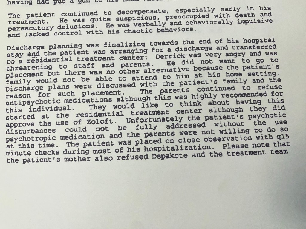 He was eventually released from the ranch, having made no real progress. His family refused to medicate him, despite clinical recommendations. Derek returned to the world unmedicated, untreated, and more dangerous—having learned how to twist therapeutic language to manipulate others into believing he was the victim. He was no longer just a troubled child. He was a calculated abuser in the making.